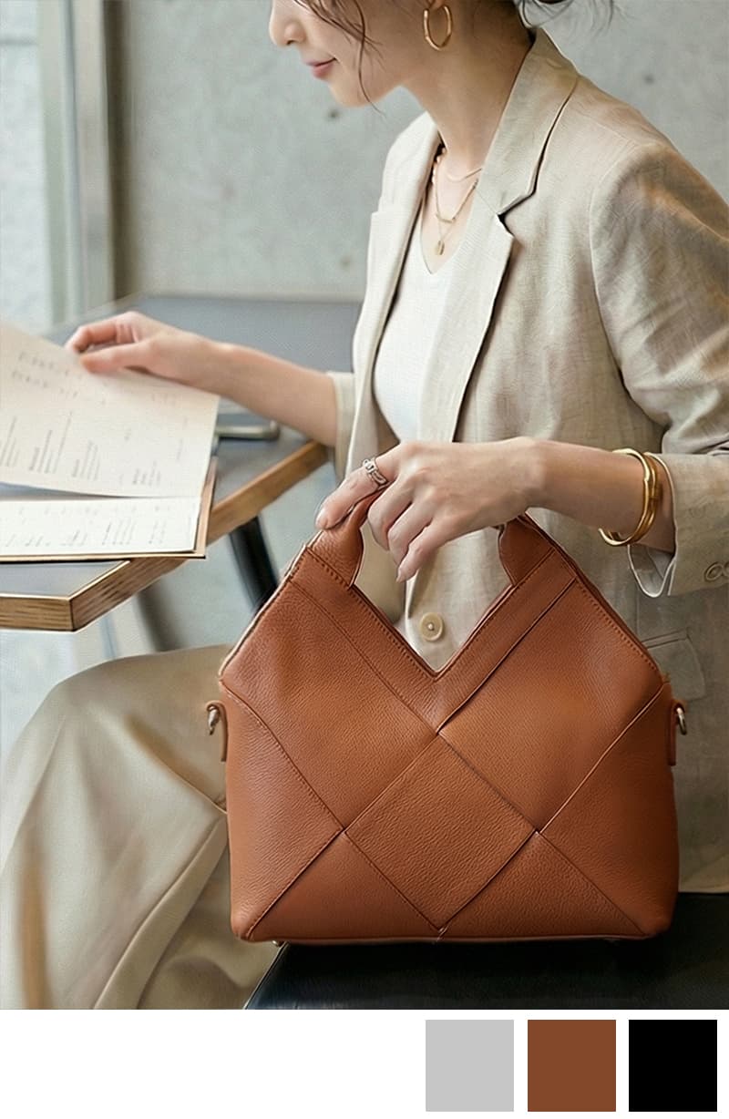 【DELI by】リアルレザー編み込み・2WAYワンハンドルバッグ