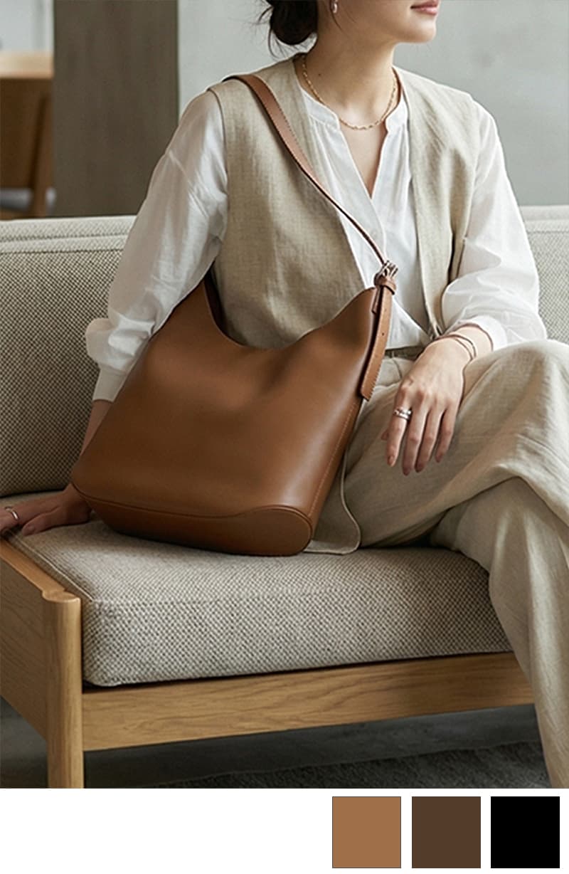 【DELI by】アーキテクトフォルムリアルレザーバケットバッグ