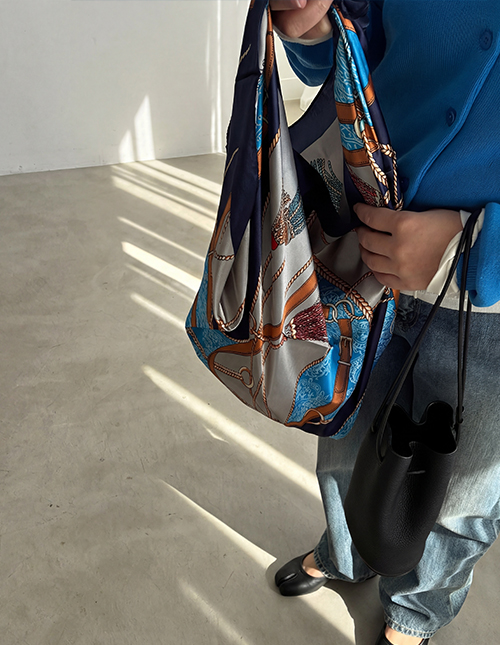 スカーフは端っこをぎゅっと縛って差し色エコバック風◎