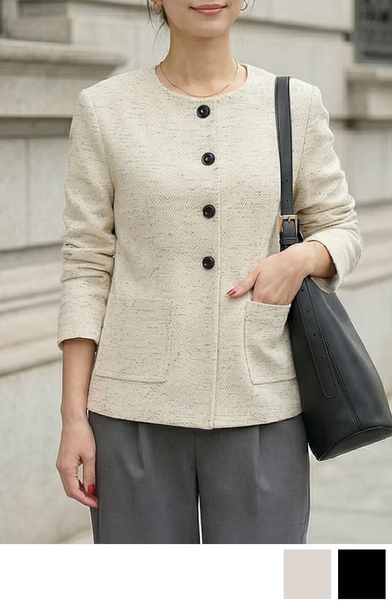 糸とばし柄織りノーカラージャケット