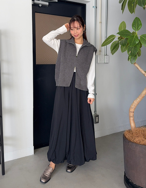 Wファスナースタンドネックニットベスト