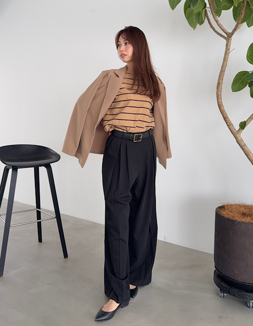 [一部予約商品]表面質感立体ラインボーダーTシャツ【3月末頃入荷】
