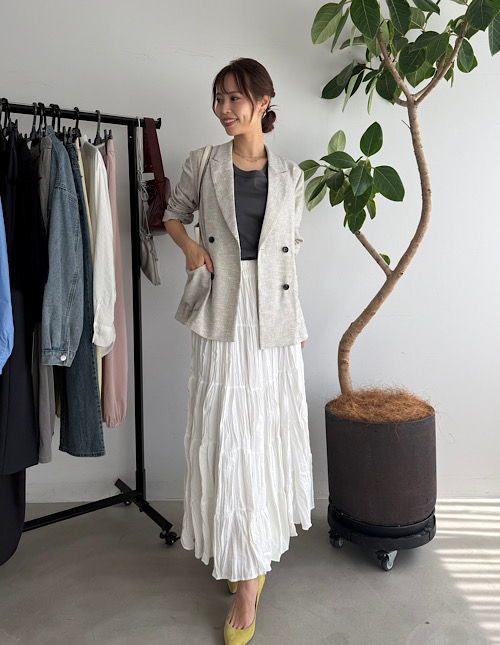 94cm丈コットン質感ワッシャーティアードスカート