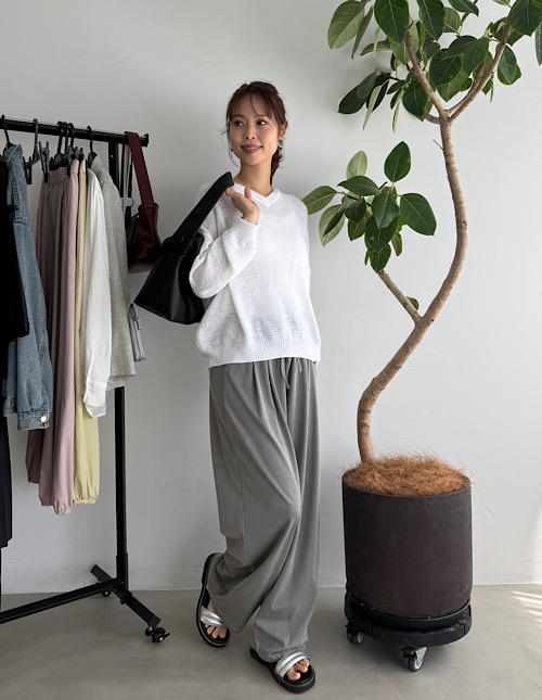 [同梱不可商品]微シアーシャリ感Vネックニット【4月上旬~中旬頃入荷】