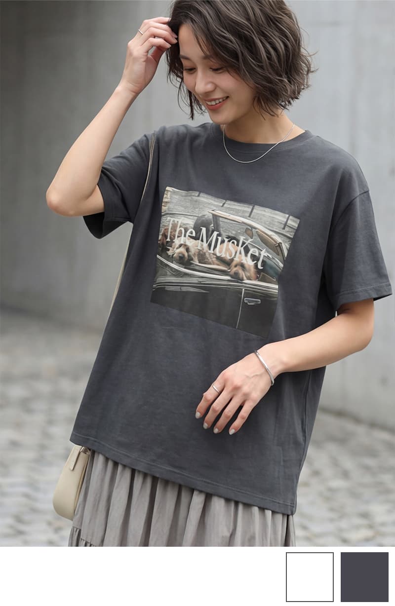 【LUXE】dogsフォトプリントさら編みTシャツ