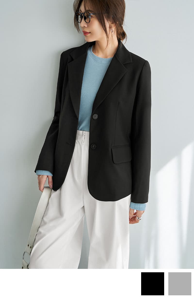 テーラード×パーカーのレイヤードで程よくカジュアルダウンし、スカートで女性らしさと動きをプラス。大人の余裕を感じるミックスコーデ。