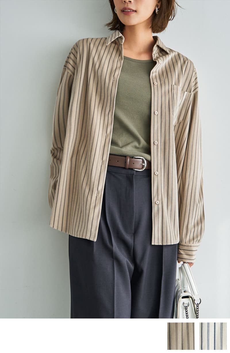 [同梱不可商品]【LUXE】ベルベットタッチストライプ柄シャツ【予約】