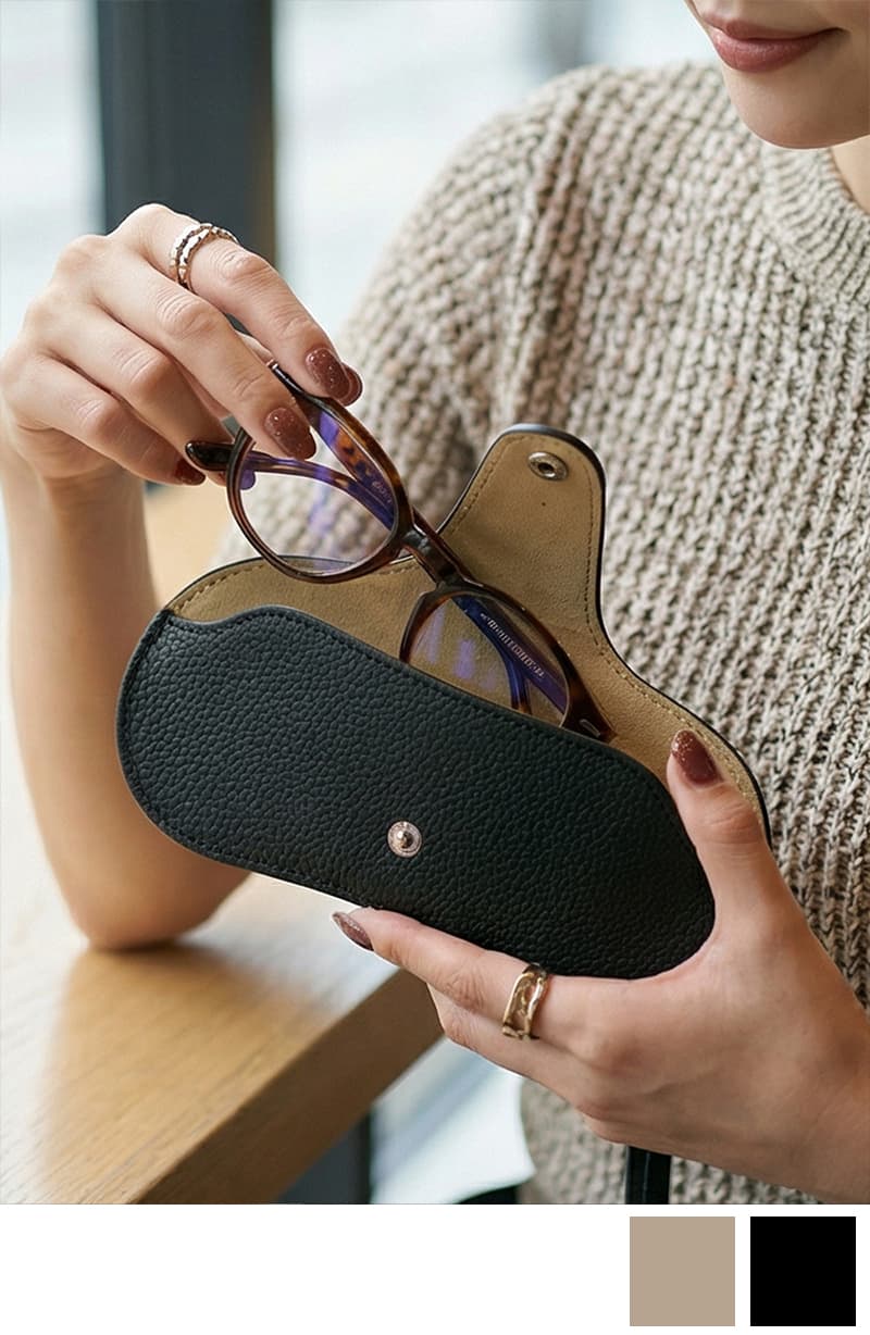 【DELI by】ネックストラップ付きリアルレザーサングラスケース