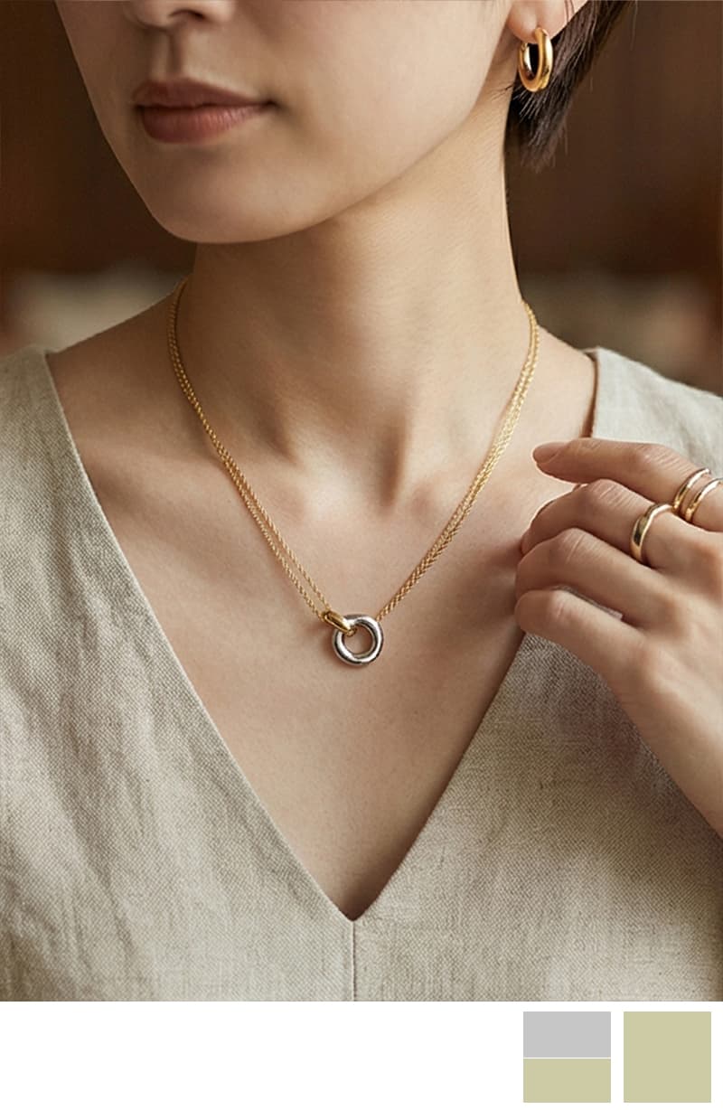 【DELI by】ダブルリングモチーフステンレスネックレス