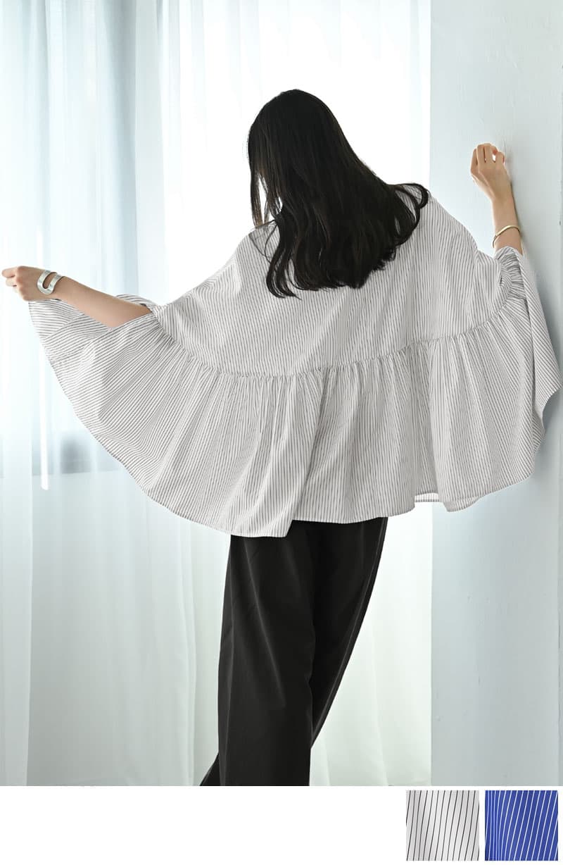 【BLK001】ポンチョ風シャツブラウス
