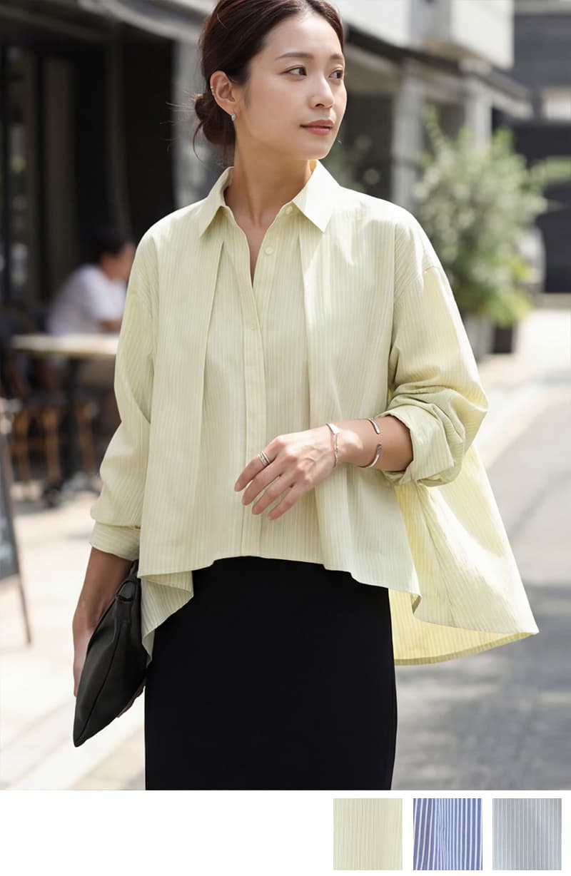 【selection】ストライプ柄立体タックショートシャツ