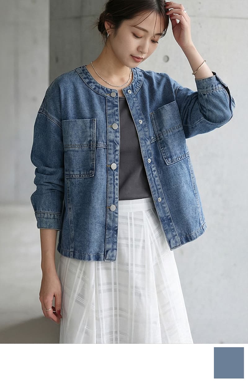 [同梱不可商品]ヌケ感ノーカラーデニムジャケット【4月上旬頃入荷】