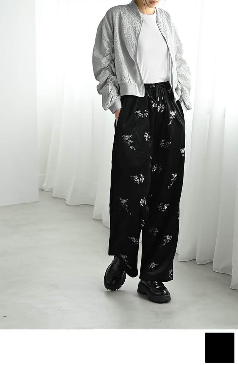【BLK001】フラワーエンブロイダリーイージーパンツ