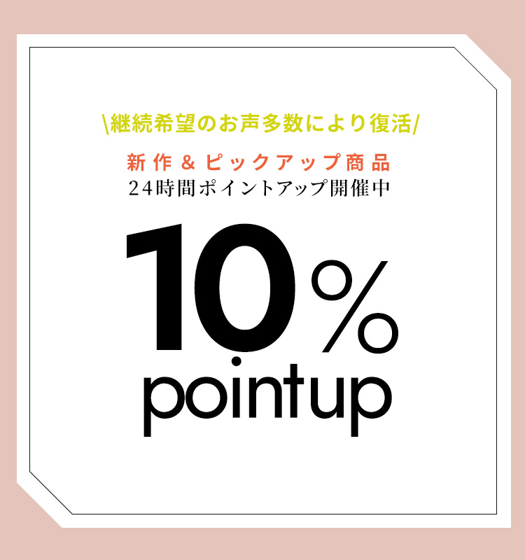 - 対象の新作&ピックアップ商品をお買い物していただくと、ポイントが10倍になるお得なキャンペーンを開催いたします。