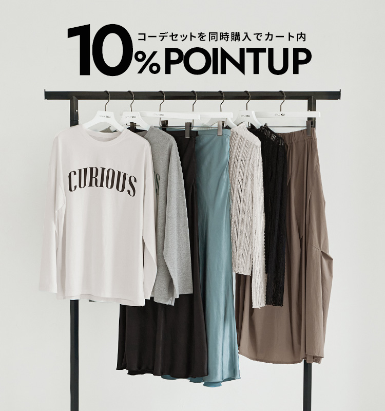 コーデセットと同時購入していただくと、カート内の全アイテムがポイント10%アップになるお得なキャンペーンを開催いたします。(一部対象外あり)
