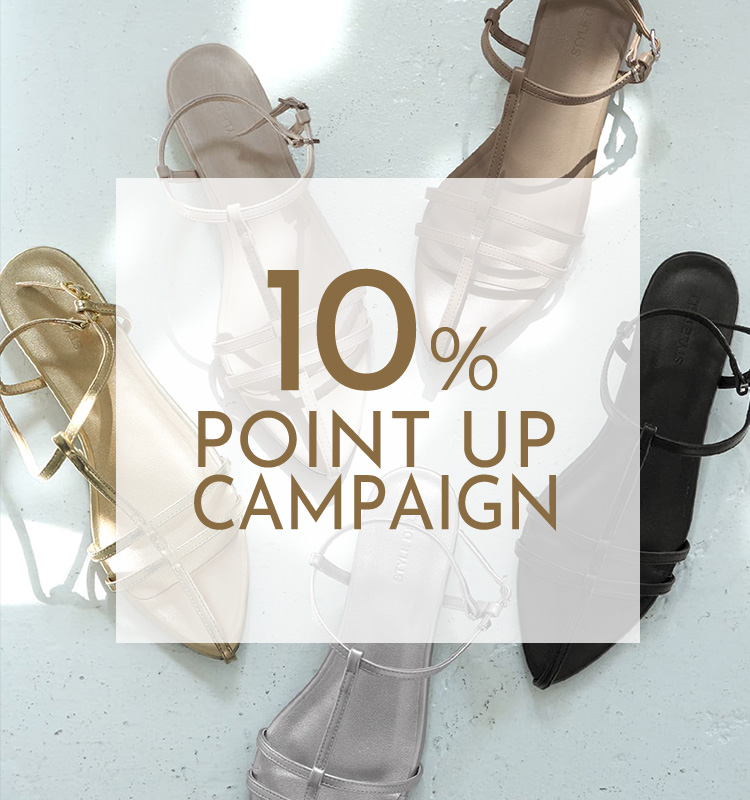 対象のシューズを購入していただくと、カート内全ての商品のポイントが10%ポイントアップになるお得なキャンペーンを開催いたします。