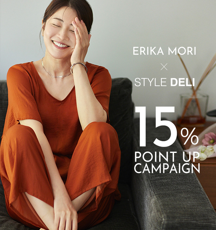 【ERIKA MORI×STYLE DELI】コラボアイテムをご購入で、カート内全ての商品が15%ポイントアップになるお得なキャンペーンを開催いたします。