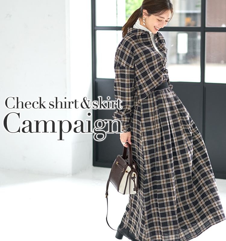 - 10/02(木)発売新作『235611立体ステッチチェック柄シャツ』または『235959立体ステッチチェック柄スカート』と対象商品1点を同時購入で10%OFFキャンペーンを開催いたします。