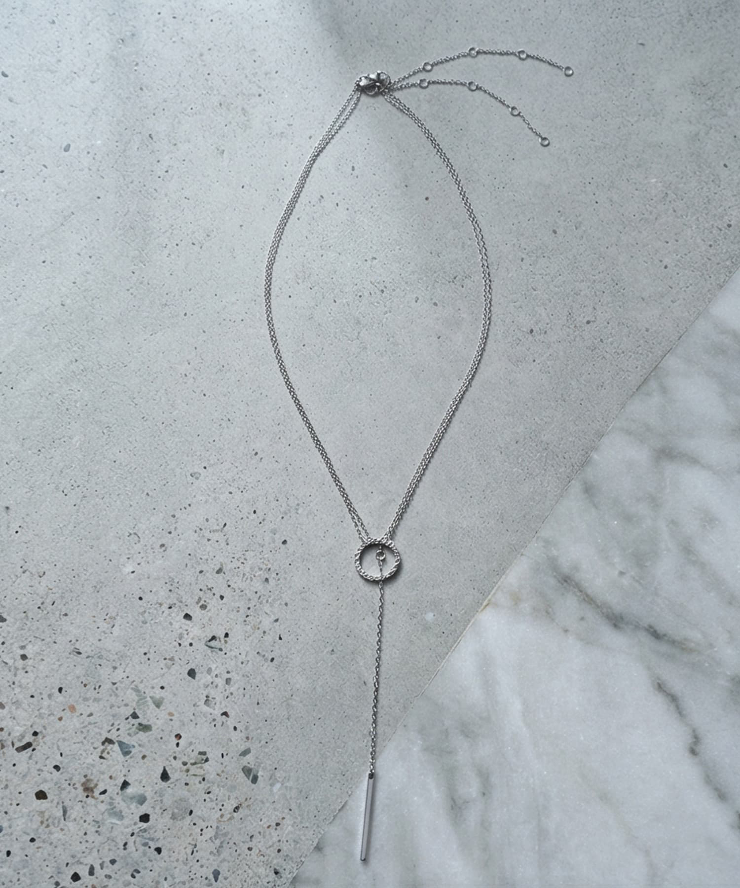 【BLK001】ステンレスYチェーンリングネックレス2個セット