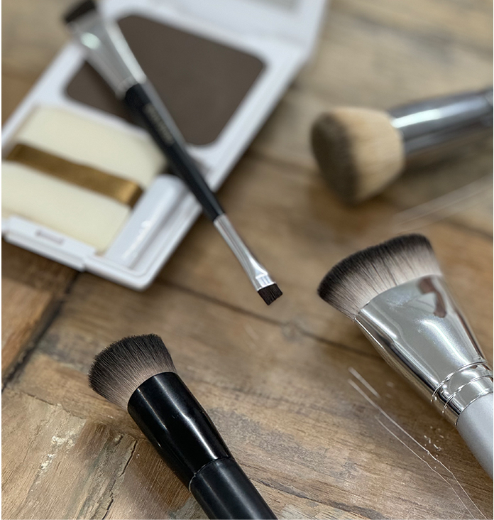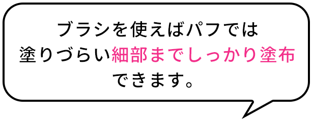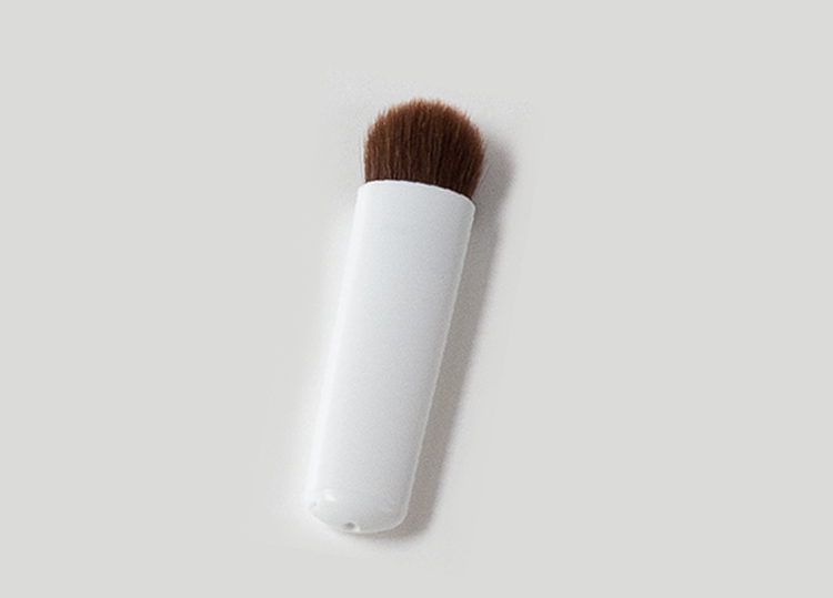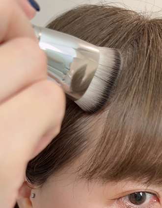 付属のパフでM字部分をうぶ毛をぼかすように塗布し、小さいブラシでもみあげ部分に産毛を足す様なイメージで塗布します。広範囲を隠したい時は自宅にあった大きめのブラシを使用しています。