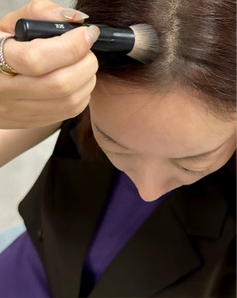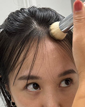 センターの分け目部分の頭皮をぼかすように塗っていますが、しっかり地肌に馴染みます。