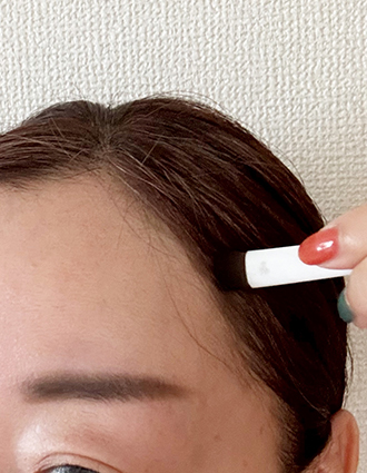 私はつむじのみカバーしたいので、付属の小さいブラシか眉毛を描くときに使用する細めのアイブロウブラシで隙間を埋める様に塗っています。