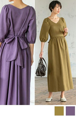 綿麻ボリュームスリーブワンピース ¥10,450-(tax in)