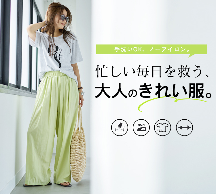 ラクで涼しく、オシャレでお手入れが簡単!夏にイイから何本も欲しくなってしまう、こなれた風合いのシボ感加工ワイドパンツ。