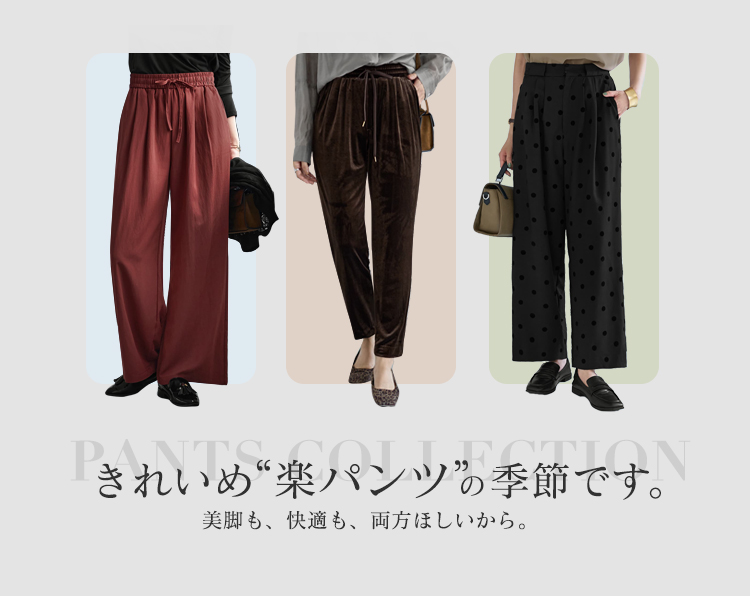 ラクなのに程よくキレイめ感もありのこっくり秋色のこなれたラクちんワイドパンツ。