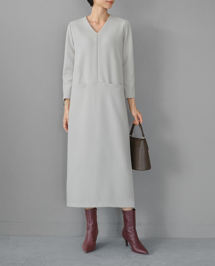 フロントポケットVネックワンピース