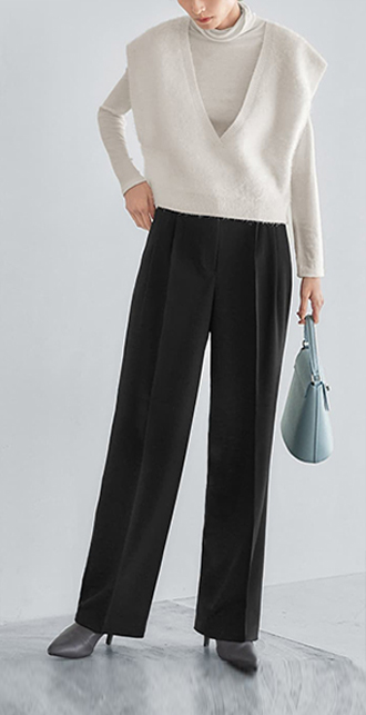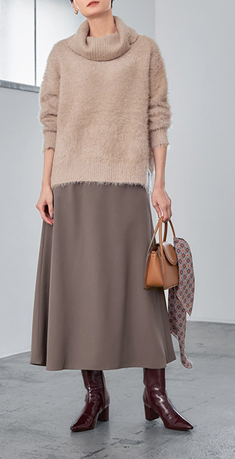 ハイネックや袖ぐりのカタチでスタイリッシュに見えるよう