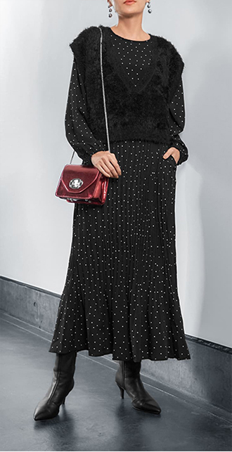 細かく計算し、素材の落ち感で膨張見えもストップ。