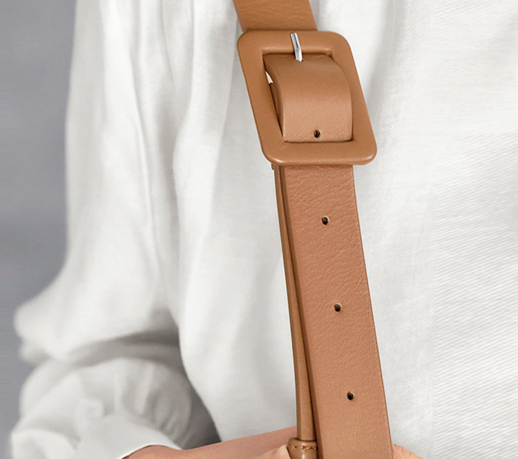 厚手のコートにも薄手の衣類にも合わせやすいよう、調節可能なベルトを採用。