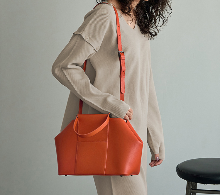 大人に相応しい本革素材を使用した、容量多めのハンドバッグ。