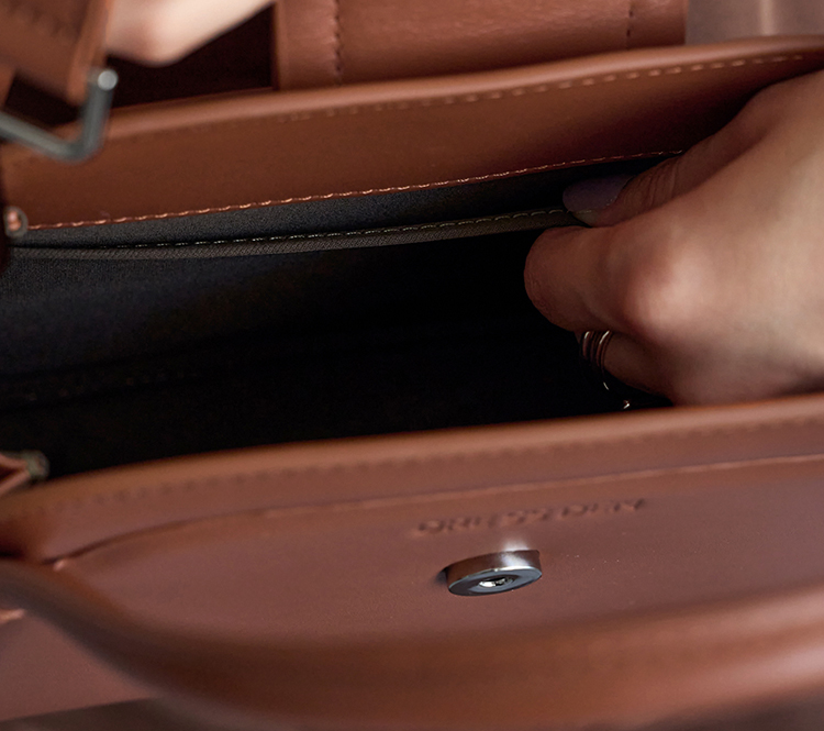 底鋲付きでバッグを置く時も安心。