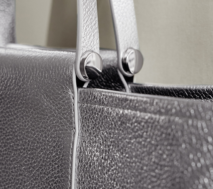 背面にくる持ち手の付け根には4つのスタッズ金具を施し、