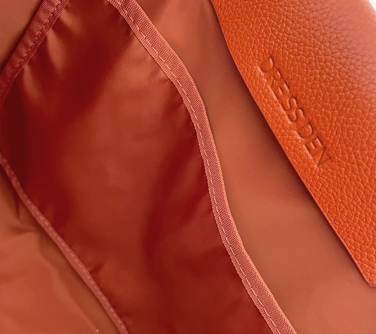 細めに見えるストラップ幅でオシャレさを出しつつ、厚みとダブルストラップで肩にかかる力を分散させました。