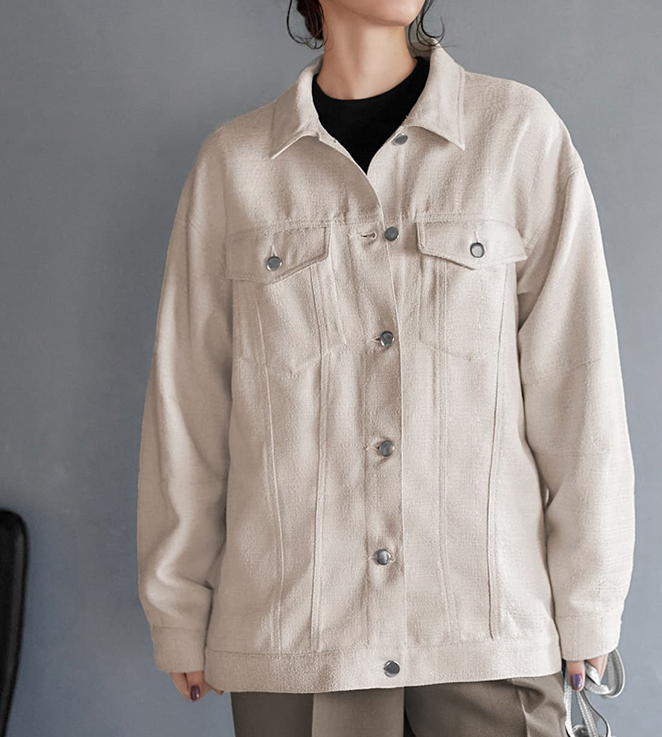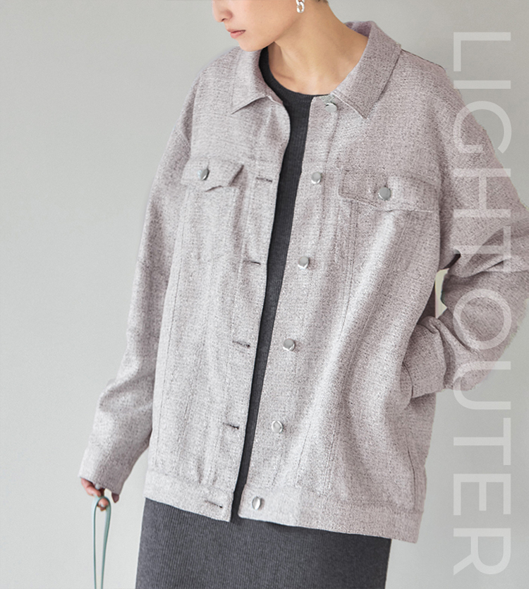 他では買えない珍しさが◎ 冬っぽい厚地のツイードではなく、春らしく スッキリとした質感のライトツイードライトツイードで お作りをしたGジャン型のキレイめジャケット。