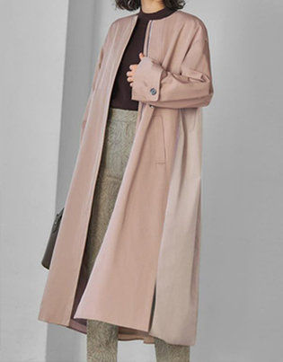 背面のたっぷりギャザーが華やかで素敵な、 ノーカラーの軽めコート。 オーバーサイズ過ぎないゆったり感が使いやすい、 膝下丈のロングコートです。