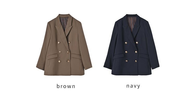 美しいチェック柄の生地を使用した、 視線を惹くダブルジャケット。 昨年も大好評をいただき、今年は新色のブラウンを 加えて2カラーでの販売となります。