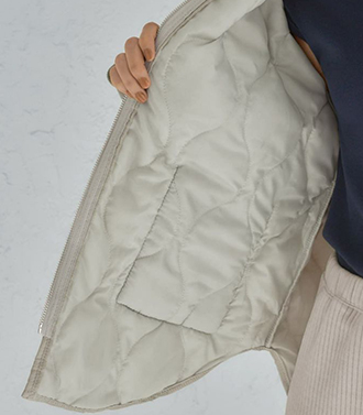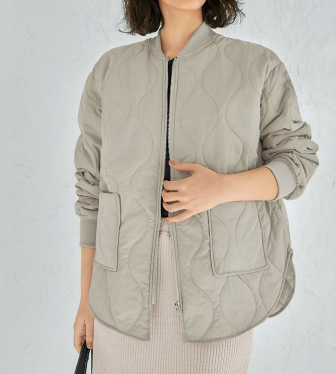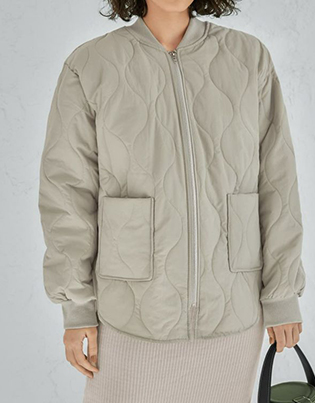 暖かめの日や春先のアウターにピッタリな、中綿入りの キルティングブルゾン。いちじくのような ステッチデザインが可愛いので、フィグと名付けました。 GジャンやMA-1類よりもずっと軽く、380グラム程度の ラクな着心地です。