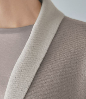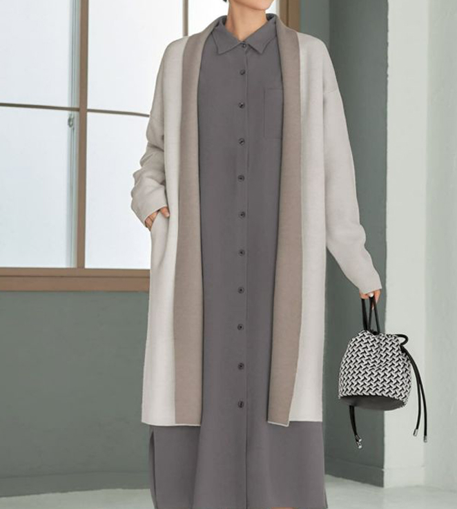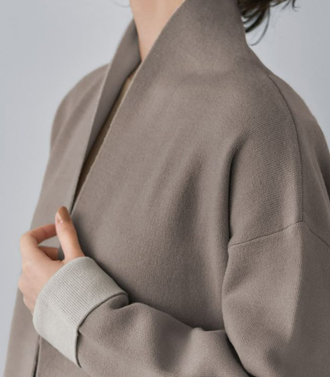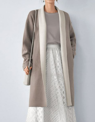 裏側が見えてもオシャレなダブルフェイス生地を 使用したニット素材アウター。 表と裏でさりげなく配色になっており、 奥行きのあるオシャレさが楽しめます。 サッと羽織れて、スッキリ洗練された印象を作れます。