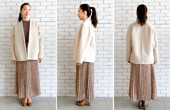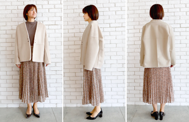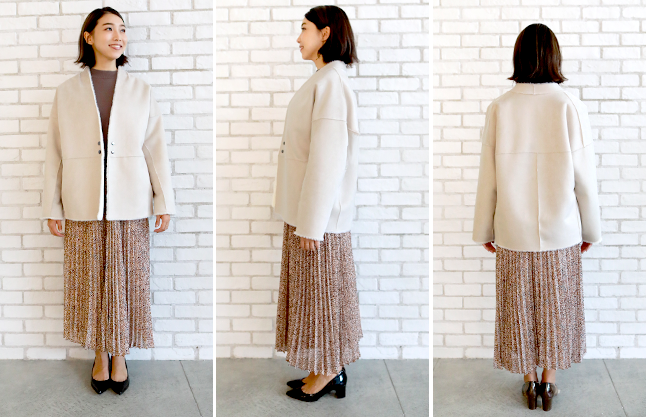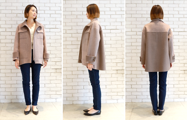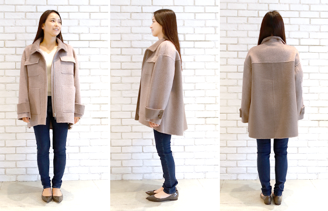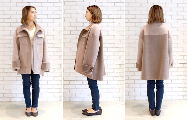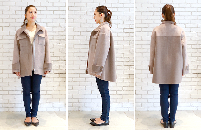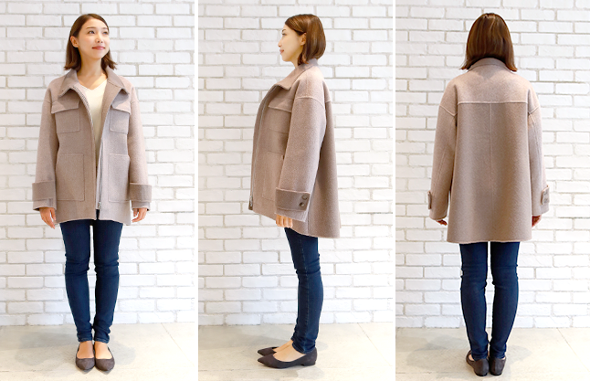167cmの松岡は腕が長いので袖がやや短く感じました。