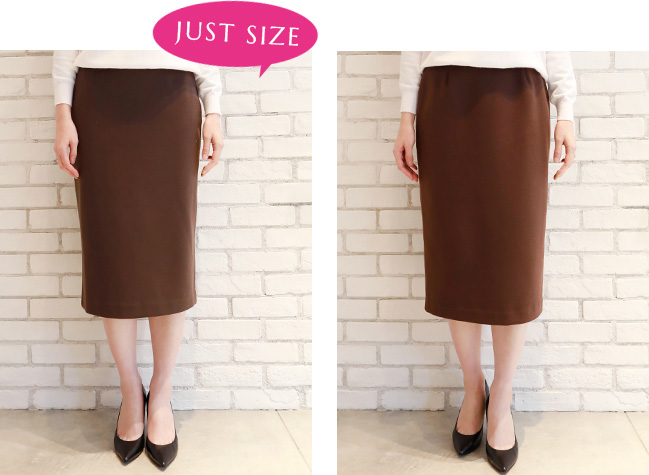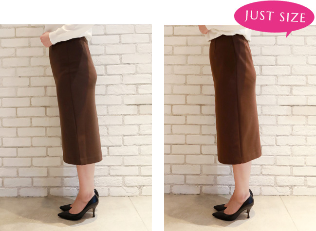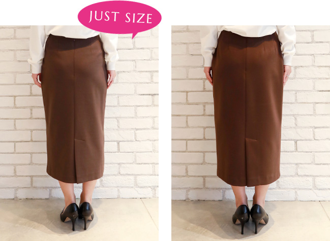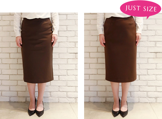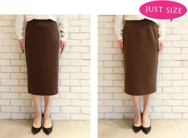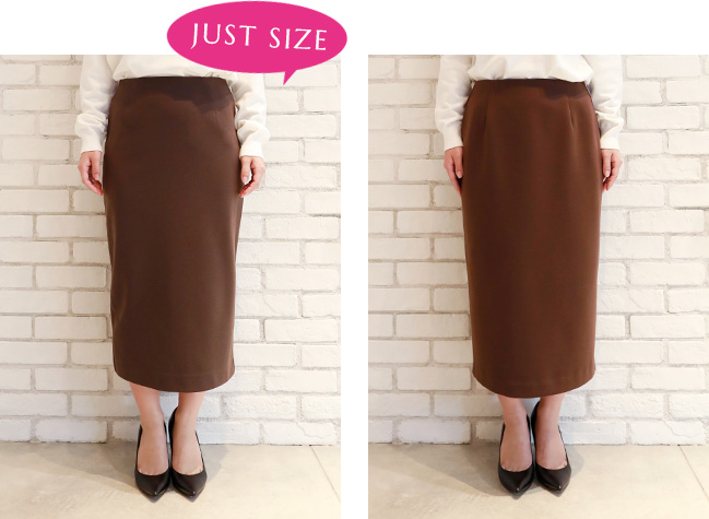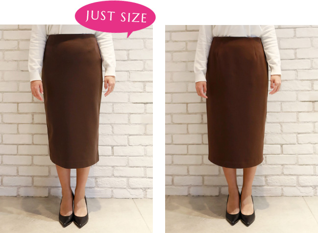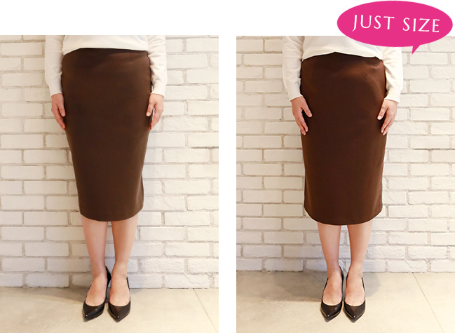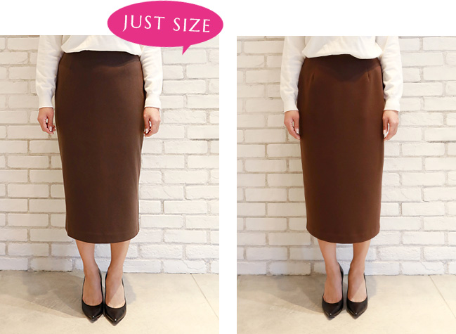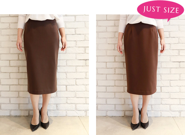 私はペンシルスカートはジャストサイズで着たいので、