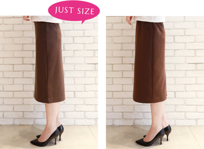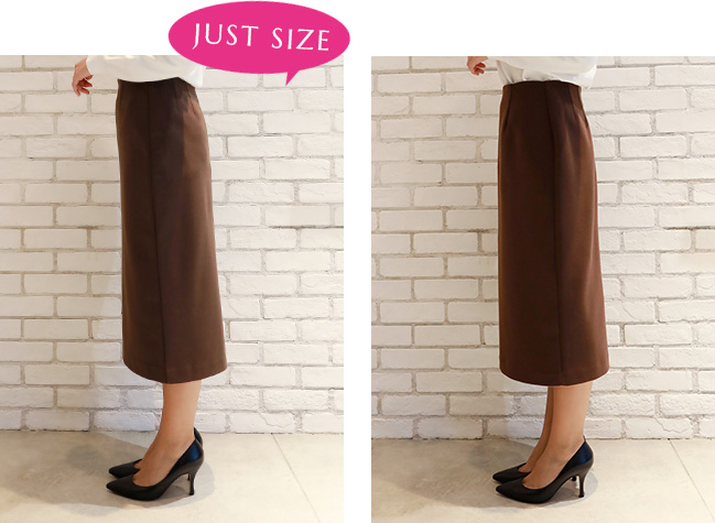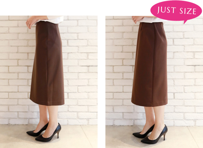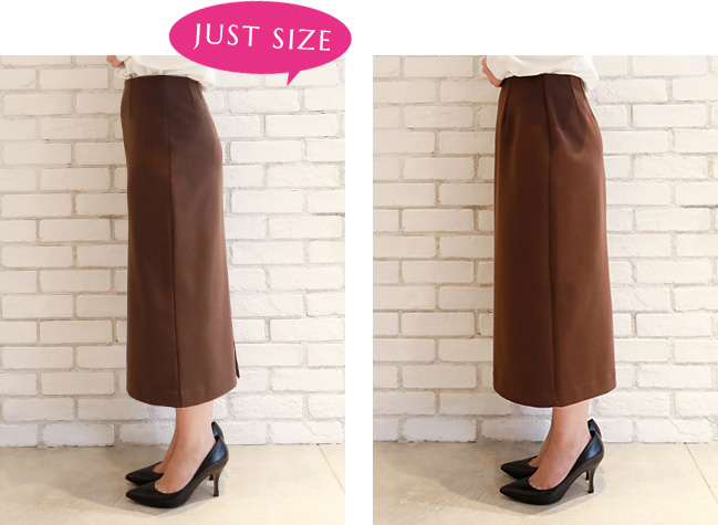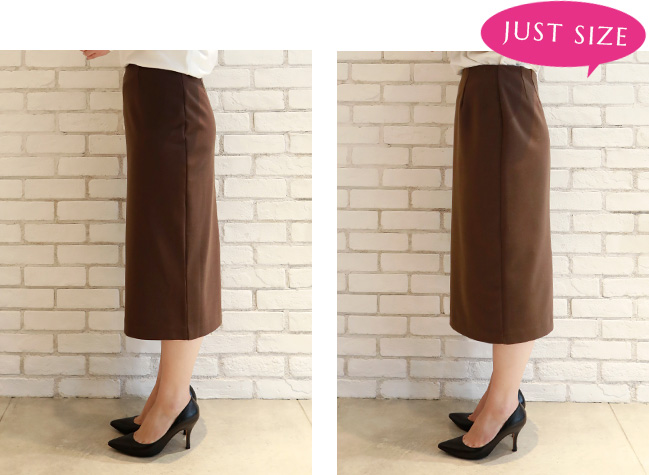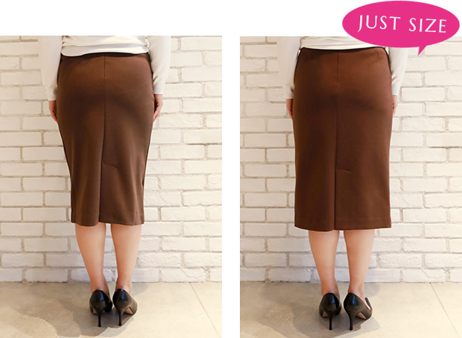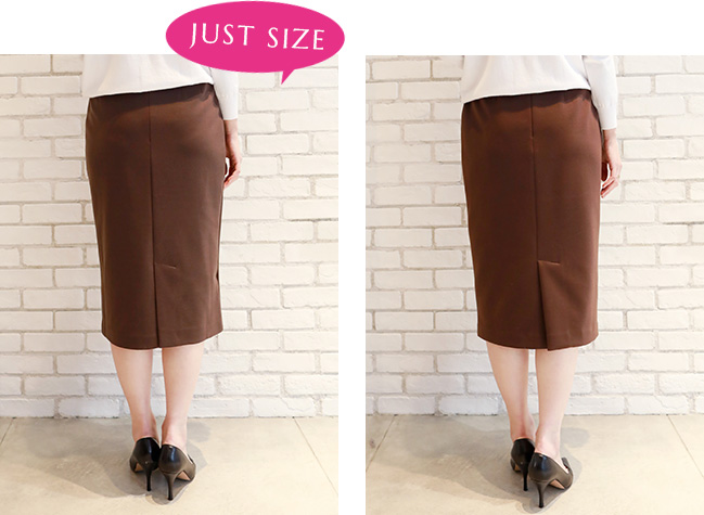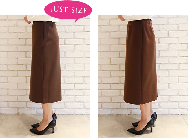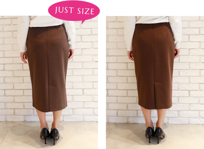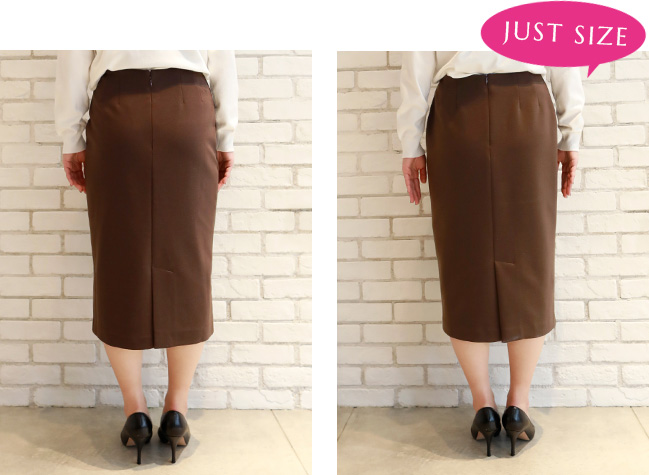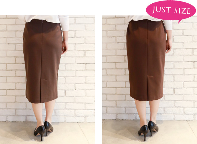 私はペンシルスカートはジャストサイズで着たいので、