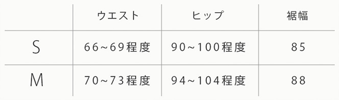 ウエスト:66cm/骨盤周り:79cm/ヒップ:89cm