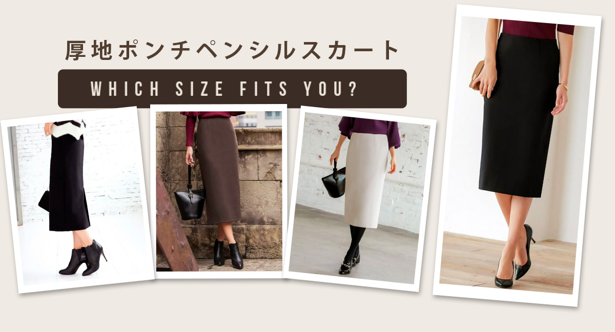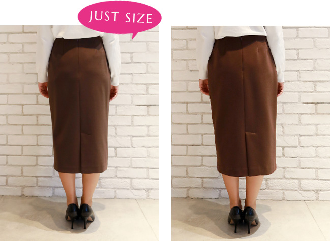 私はペンシルスカートはジャストサイズで着たいので、