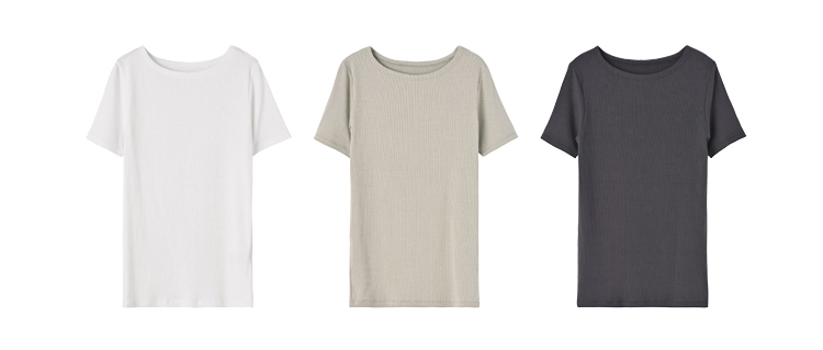薄手でよく伸び、柔らかくてなめらかなテレコ系のリブ生地で仕上げたカットソートップス。その方の体型に合わせて『柔軟にゆるフィットする』トップスで、シュッとした上半身シルエットが作れます。
