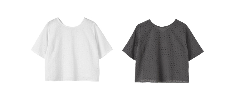 コットンレース半袖クロップドブラウス