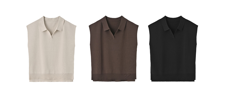 新涼感オープン襟付きニットトップス